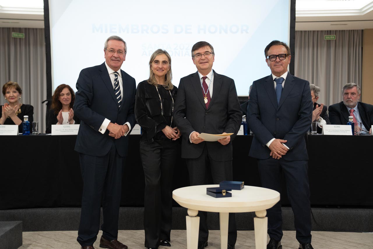 El Colegio de Odontólogos y Estomatólogos de A Coruña celebró el 7 de febrero los actos en honor a su patrona, Santa Apolonia. Nuestro presidente, Luciano Vidán, acudió al Hotel Oca Puerta del Camino de Santiago de Compostela para unirse a la conmemoración. Durante el acto se concedieron las medallas por los 25 y 50 años de colegiación y se realizaron los nombramientos de los Miembros de Honor de 2026, que recayeron en Ángel Luis Fernández, exdirector del Departamento de Cirugía y Especialidades Médico-Quirúrgicas de la USC, y Emilia Sánchez, exsubdirectora general de Especialidades en Ciencias de la Salud del Ministerio de Educación y Ciencia.