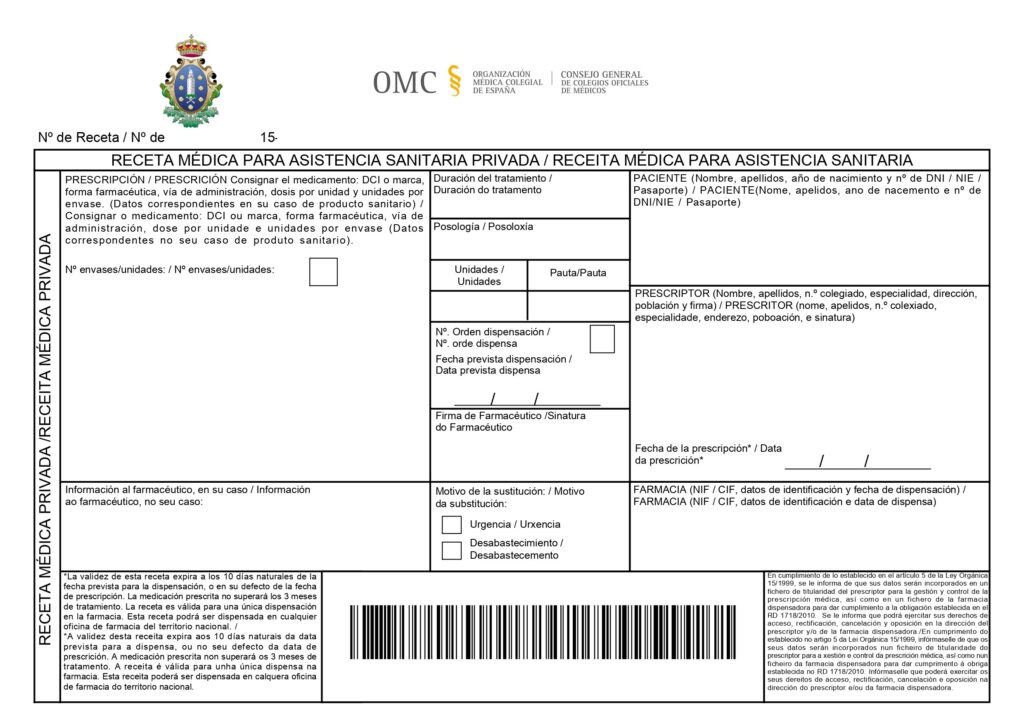 O 21 de xaneiro de 2013, entrou en vigor o Real Decreto 1718/2010 sobre receitas médicas e ordes de dispensación. Así, os médicos que exercen a medicina privada e aqueles que, independentemente do lugar de traballo, requiran do seu uso de forma particular, deberán utilizar este novo modelo de receita, cuxa solicitude está dispoñible no Colexio.